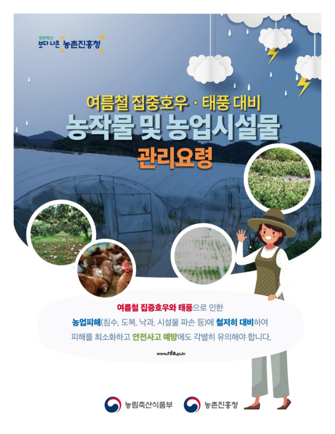 여름철 집중호우. 태풍대비 농작물 및 농업시설물 관리요령