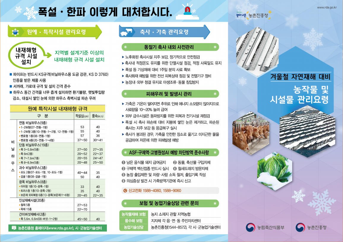 겨울철 자연재해 대비 농작물 및 시설물 관리요령